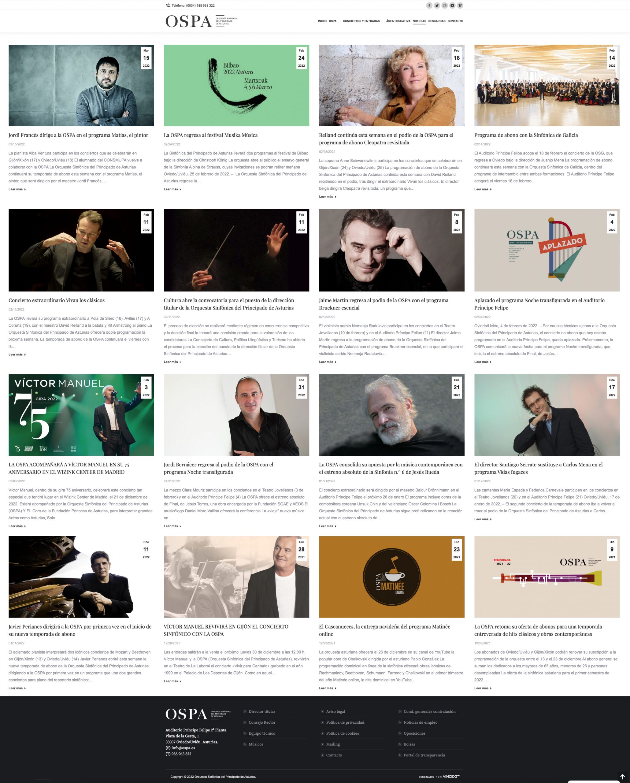 Diseño de página web para la OSPA (Orquesta Sinfónica del Principado de Asturias). Mantenimiento.